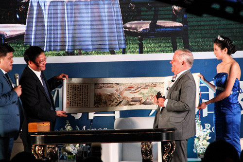 活動(dòng)最后,鴻寶集團(tuán)總裁平明與羅杰斯先生互贈(zèng)禮物。一幅《清明上河圖》見(jiàn)證了羅杰斯先生與鴻寶集團(tuán)深厚的友誼。同時(shí),羅杰斯先生更是將自己的親筆簽名書(shū)籍永久性的留在了鴻園營(yíng)銷(xiāo)中心書(shū)吧內(nèi)。