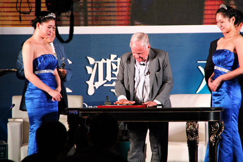 眾所周知,羅杰斯先生旅行的足跡遍布全球各國(guó)。而這次來(lái)鴻園,他不僅給中原企業(yè)家、投資者留下了難能可貴的財(cái)富智慧,更為鴻園留下了他點(diǎn)石成金的手印。羅杰斯先生高舉自己的手模,讓這一輝煌盛世永久性的被保留、被銘記。