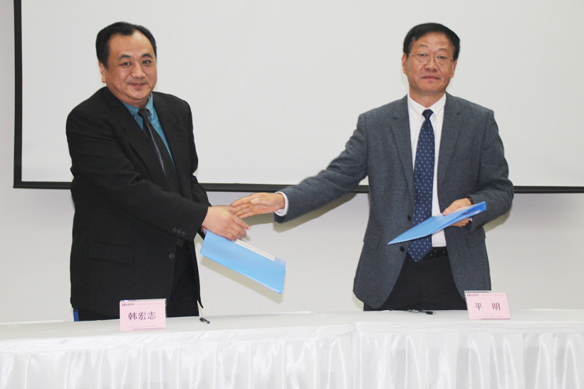 集團公司袁董事長與總裁平明簽訂年度目標責任書
