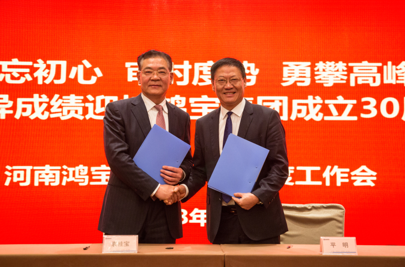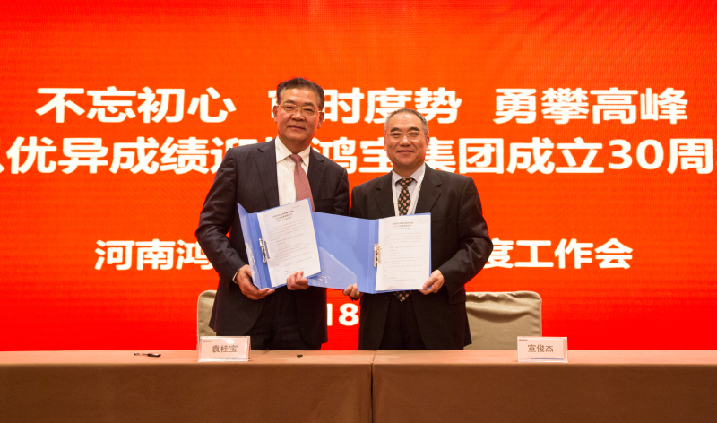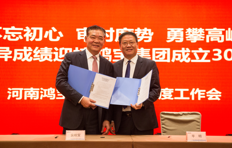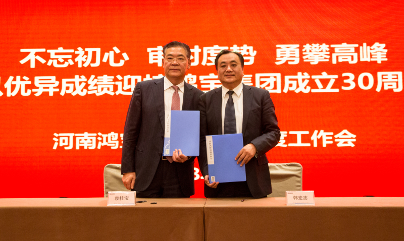 集團董事長袁桂寶與副總裁宣俊杰簽訂戰(zhàn)略投資部《2018-2022年度目標(biāo)責(zé)任書》