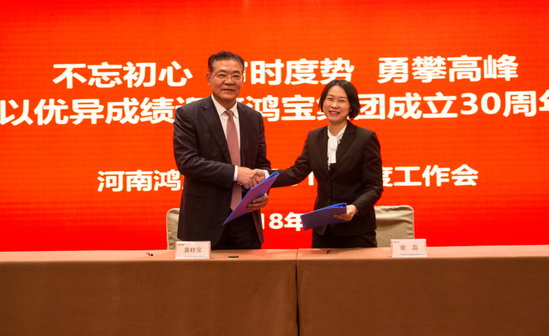 集團董事長袁桂寶與鴻寶大酒店總經(jīng)理裴蕊簽訂《2018年度目標(biāo)責(zé)任書》