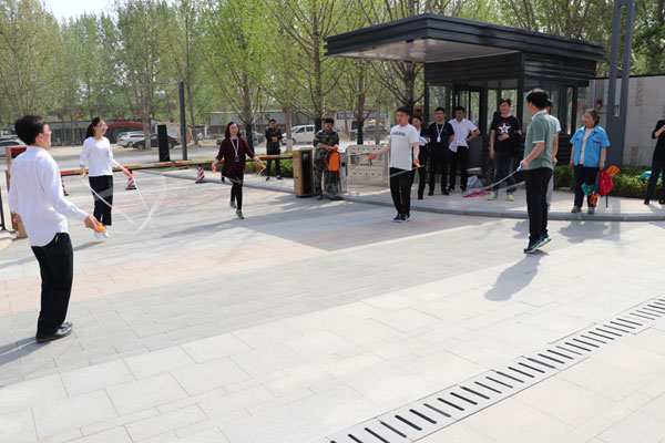 在地產集團承辦的拔河比賽中,各企業代表隊踴躍參與,精英盡出,在比賽中分毫必爭,現場氣氛異常激烈。經過兩輪四場比賽的角逐,地產二隊獲得比賽冠軍,集團公司代表隊獲得亞軍。在乒乓球單打比賽中,雙方你來我往,斗智斗勇,互不相讓,比分也在交叉上升,最終集團公司張繼賢和地產集團任叢叢分別摘得男子、女子單打桂冠,滿載而歸。在趣味運動會現場,園林集團為大家準備了跳繩、踢毽子、滾鐵環、碰陀螺四個小游戲,讓大家在緊張的工作中適當放松,重拾童年樂趣,重溫童年時光。