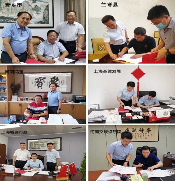 本次簽約采取各方分別簽字蓋章形式,新鄉市副市長王天興、蘭考縣縣長李明俊、河南鴻寶集團董事長袁桂寶、上海基礎設施建設發展(集團)有限公司董事長胡軍、上海城建市政工程(集團) 有限公司董事長顧春華、河南省交通規劃設計研究院股份有限公司總經理湯意分別代表各方簽署。