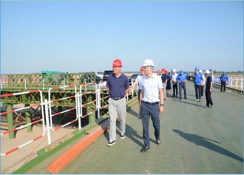 4 月 4 日上午,鴻寶集團袁桂寶董事長蒞臨蘭封高速項目實地調研慰問。蘭封高速項目公司副總經理韓宏志、常務副總經理黃欽、副總經理周朝啟、財務總監王龍河等陪同。