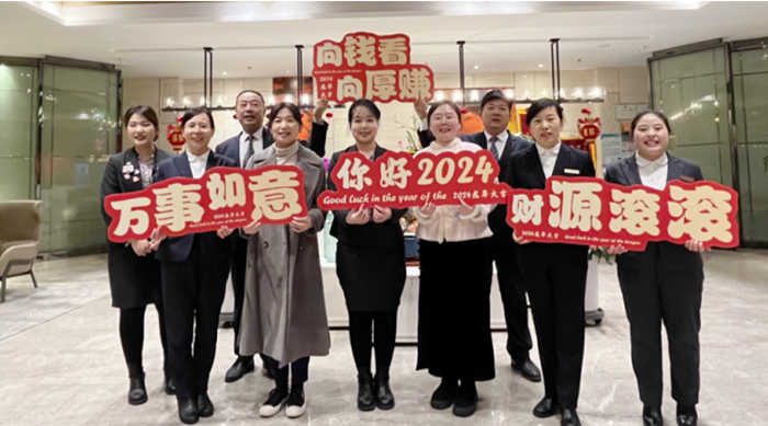 同一時(shí)間,集團(tuán)公司監(jiān)事龍婉瑩、總裁辦公室主任丁曉亞代表集團(tuán)公司前往許昌鴻寶大酒店進(jìn)行慰問(wèn),并與酒店管理團(tuán)隊(duì)共同為酒店各部門在崗員工派發(fā)新年糖果和紅包,將親切關(guān)懷與濃濃祝福送給了每一位酒店人。