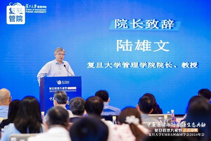 會上,復旦EMBA河南同學會會長張玉筍、鴻寶集團總裁袁曉曦致歡迎辭,復旦大學管理學院院長陸雄文作院情報告。