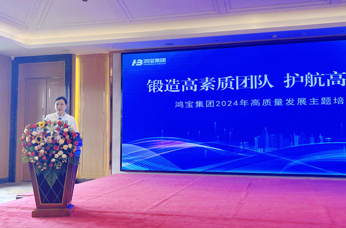 2024年9月12日,鴻寶集團(tuán)高質(zhì)量發(fā)展主題培訓(xùn)第二期在集團(tuán)五樓多功能廳正式舉行,集團(tuán)公司、各成員企業(yè)重要領(lǐng)導(dǎo)干部及骨干人員參與了本次培訓(xùn)。