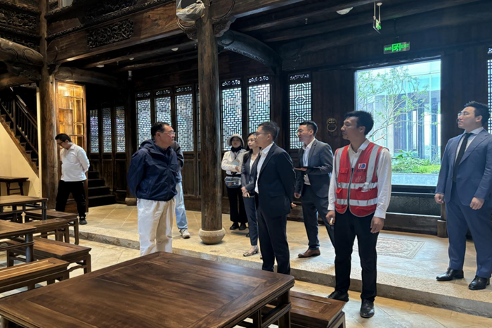 袁董事長先后參觀一樓大堂、二樓餐廳、古建文化空間、16樓樣板間、西塔頂層會所、東塔露臺,詳細詢問了現(xiàn)場工程進度、臺風后維養(yǎng)維修工作,肯定了工程團隊一直以來的努力,囑咐雅詩閣駐店總經(jīng)理張雪茜要充分利用好東塔會所、西塔樓臺以及古建空間,運用靈活的經(jīng)營模式為公寓后期的運營增效,通過雅詩閣體系高標準的服務(wù)質(zhì)量鎖住客戶。