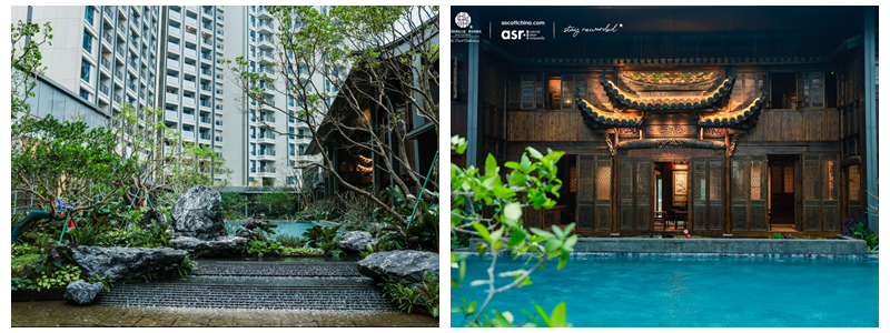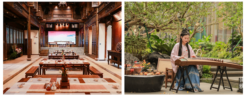 酒店設有一處古建文化空間,宛如一位穿越時空的使者,不僅生動詮釋了 “門見古今” 的深刻內涵,更成為了中華文化傳承的鮮活見證。青磚黛瓦、殿堂樓閣,每一磚一瓦都承載著中華民族的歷史根脈與家國情懷,靜靜訴說著歲月的滄桑變遷。作為酒店的靈魂所在,古建不僅彰顯了雅詩閣臻選的精神,更為賓客提供了獨特的文化體驗。古建由中國建筑古民居守護人張勝吾先生與鴻寶集團共同守護,空間內定期舉辦各類文化活動。住客還可換上漢服,沉浸式體驗宋代雅致生活,感受穿越時空的文化魅力。