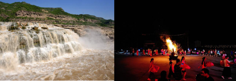 隨著大巴車(chē)的前進(jìn),一場(chǎng)輕松愉悅的團(tuán)隊(duì)破冰行動(dòng)便熱烈開(kāi) 場(chǎng)。隨著延安知識(shí)問(wèn)答、自我介紹等互動(dòng)環(huán)節(jié)的推進(jìn),原本因部 門(mén)壁壘或崗位差異帶來(lái)的些許陌生感迅速消融,為后續(xù)幾天的集 體學(xué)習(xí)、深入交流和團(tuán)隊(duì)協(xié)作奠定了堅(jiān)實(shí)的信任基礎(chǔ)。 13:00,研學(xué)團(tuán)抵達(dá)壺口瀑布,滔滔黃河水自寬闊的河床驟 然收束,空氣中彌漫著細(xì)密的水霧。奔騰咆哮的瀑布使成員們領(lǐng) 略了母親河的磅礴氣勢(shì),感受中華民族自強(qiáng)不息的精神底蘊(yùn)。夜 幕降臨,研學(xué)團(tuán)入住知青文苑酒店。晚餐后,一場(chǎng)別開(kāi)生面的篝 火晚會(huì)在廣場(chǎng)熱烈開(kāi)場(chǎng)。成員們踏著鼓點(diǎn)與當(dāng)?shù)厝罕姽才ぱ砀瑁跉g聲笑語(yǔ)中深切體會(huì)革命老區(qū)的淳樸民風(fēng)。